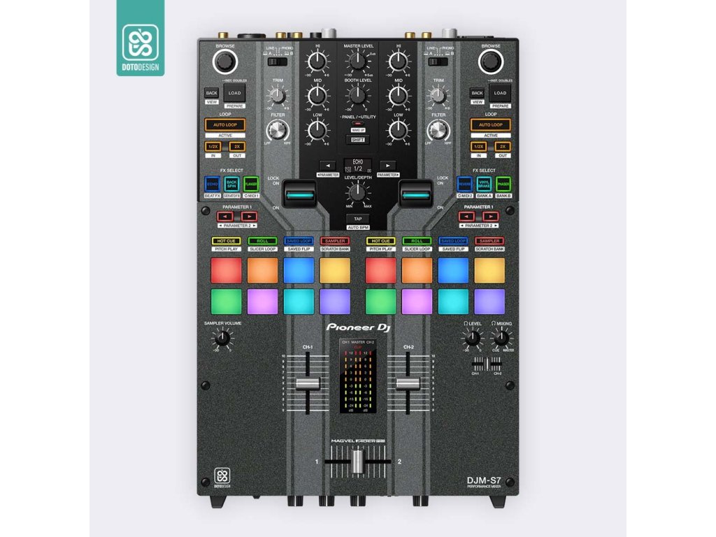 Naklejka na mikser Pioneer DJM-S7 w wersji Classic Edition, którego design inspirowany jest klasycznymi modelami mikserów Pioneer DJM-909 i DJM-707. Kolor black (czarny).