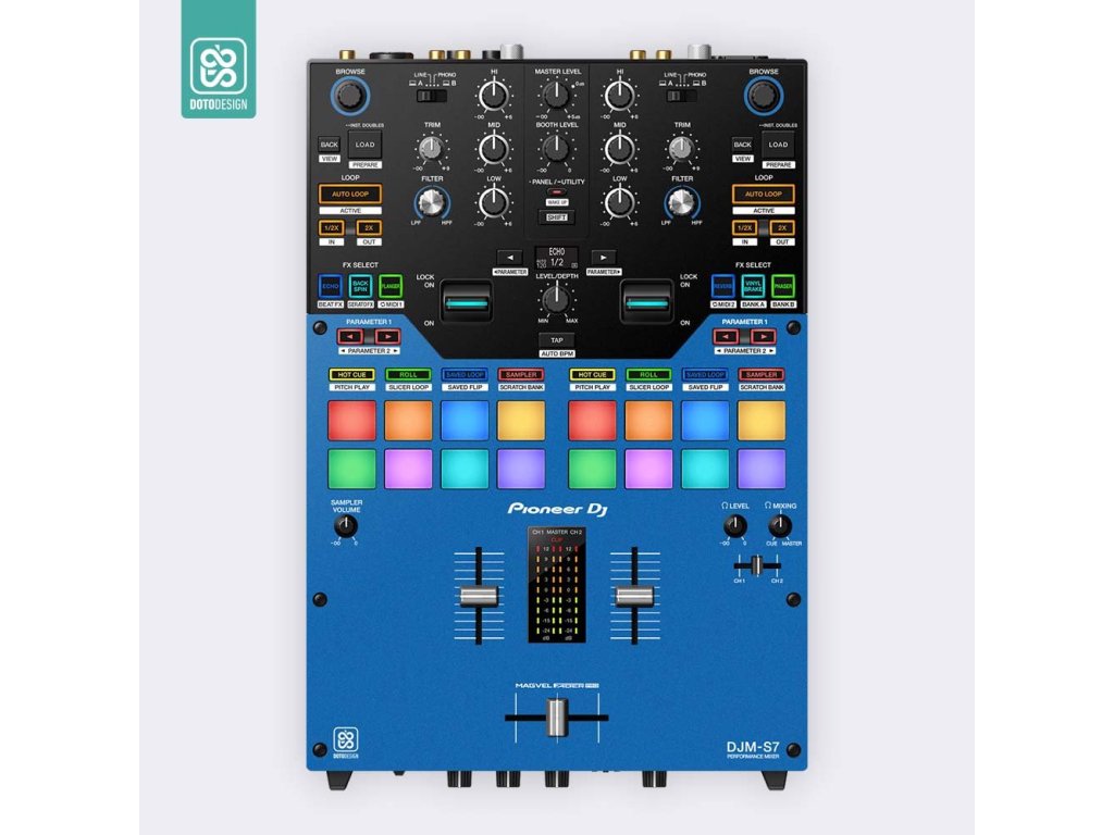 Naklejka na panel mikserski Pioneer DJM-S7 w wersji COLORS DVS, kolor blue (niebieski).