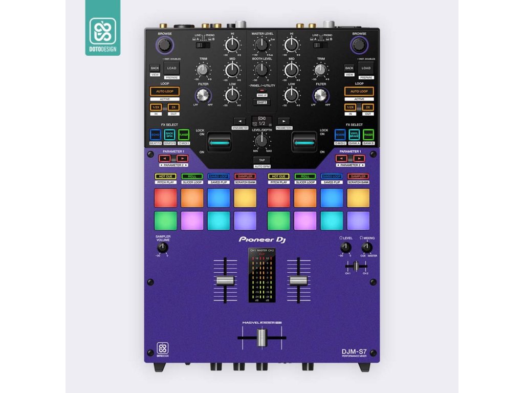 Naklejka na panel mikserski Pioneer DJM-S7 w wersji COLORS DVS, kolor purple (fioletowy).