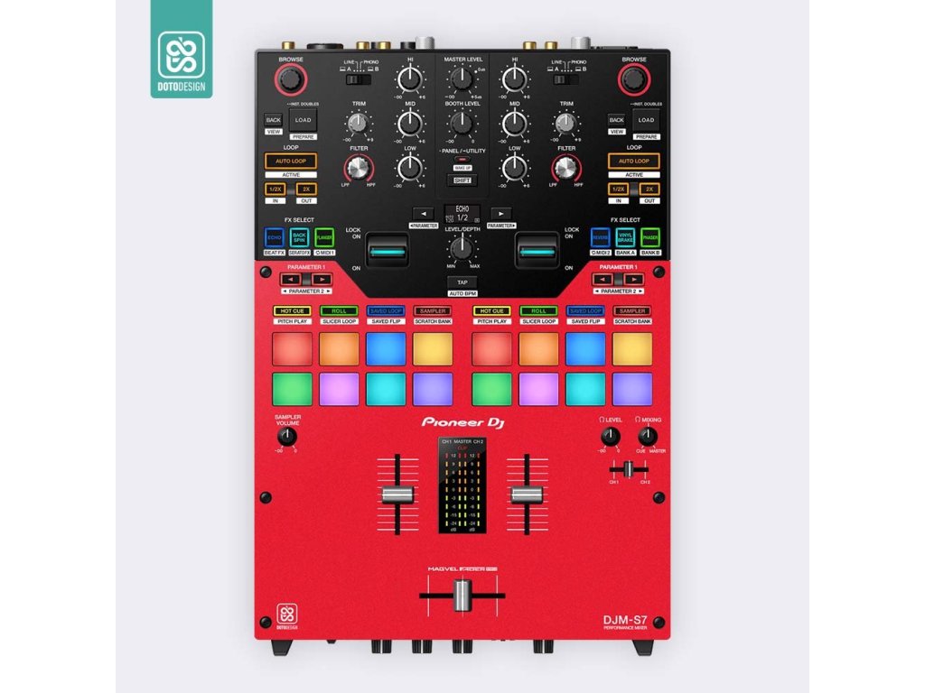 Naklejka na panel mikserski Pioneer DJM-S7 w wersji COLORS DVS, kolor red (czerwony).