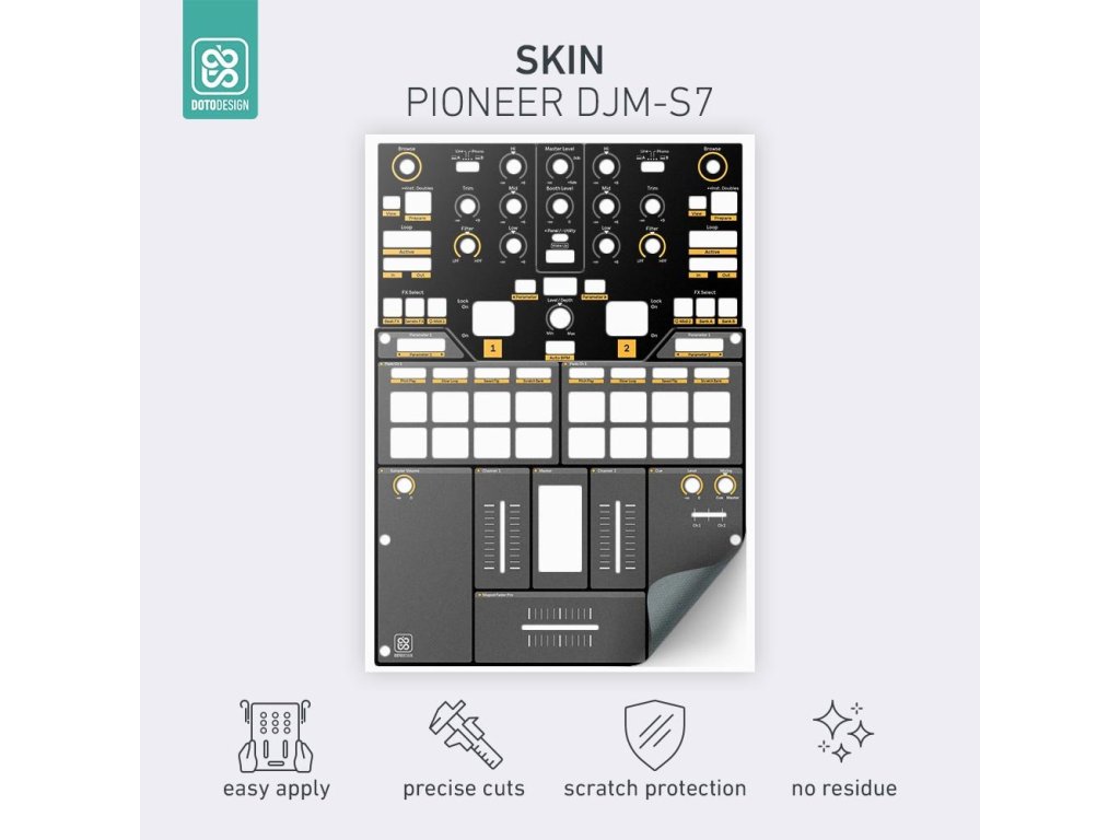 Naklejki Doto Design są idealne do personalizacji wyglądu Twojego sprzętu DJ-skiego (mikserów, gramofonów, odtwarzaczy, kontrolerów). Dostępna jest szeroka gama kolorów i ekskluzywnych wzorów, aby stworzyć niepowtarzalny wygląd. Skórki są precyzyjnie wykonane z materiałów premium, posiadają matową powłokę antyrefleksyjną i chronią Twój sprzęt przed zarysowaniami i zużyciem. Dzięki nowej warstwie adhezyjnej aplikacja jest bardzo prosta, a w przypadku usunięcia skórki na sprzęcie nie pozostaną żadne ślady ani resztki kleju.