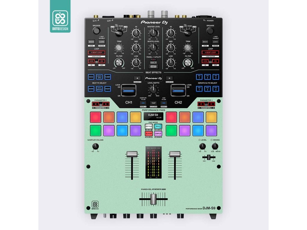 Naklejka na mikser Pioneer DJM-S9 w wersji COLORS DVS, kolor aquamarine (akwamarynowy).