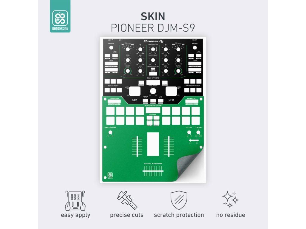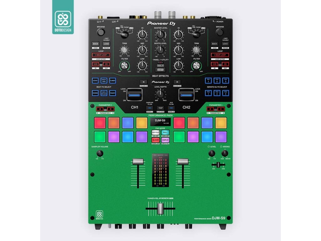 Naklejka na mikser Pioneer DJM-S9 w wersji COLORS DVS, kolor green (zielony).