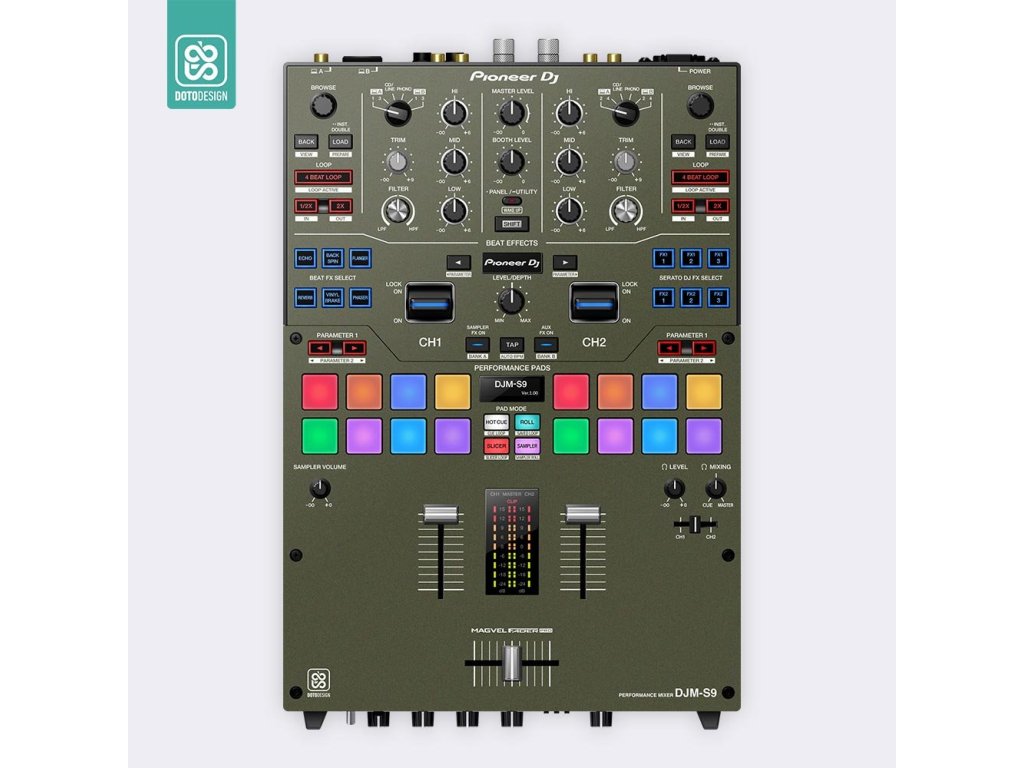 Naklejka na panel mikserski Pioneer DJM-S9 w wersji FULL COLORS, kolor army green (wojskowa zieleń).