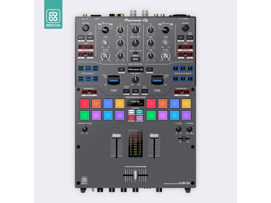 Naklejka na mikser Pioneer DJM-S9 w wersji FULL COLORS, kolor graphite grey (grafitowa szarość).