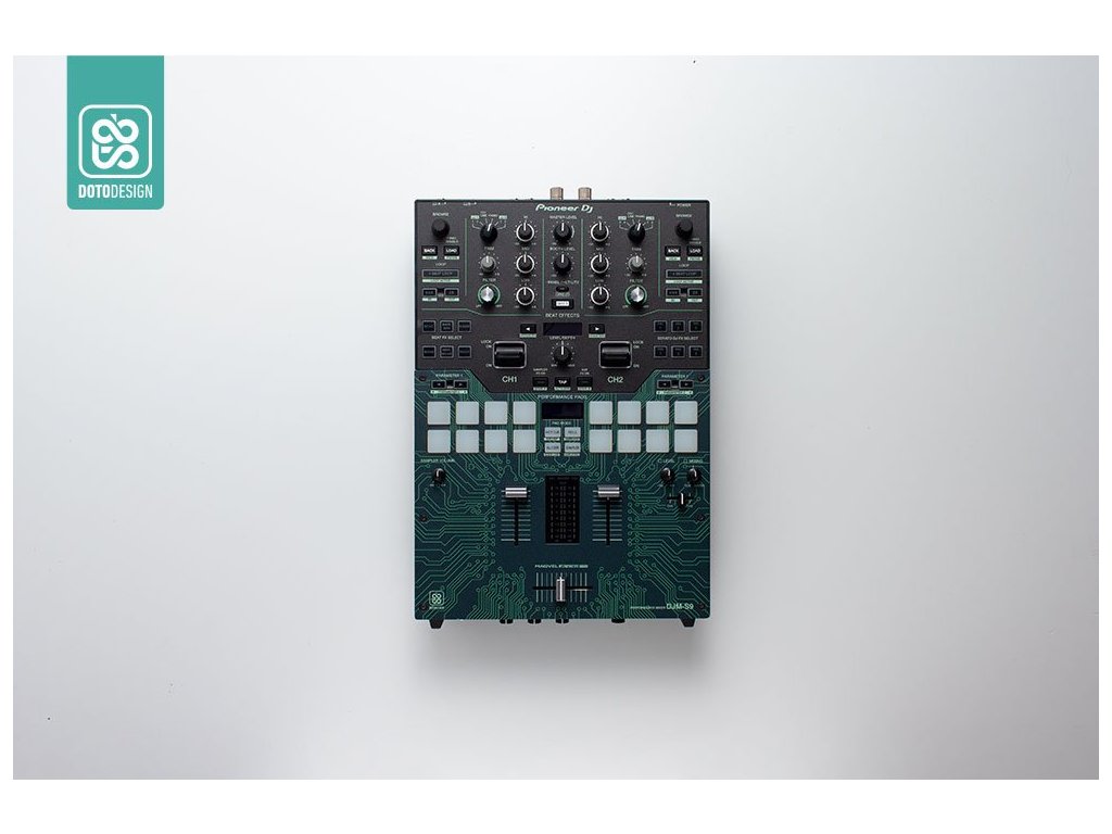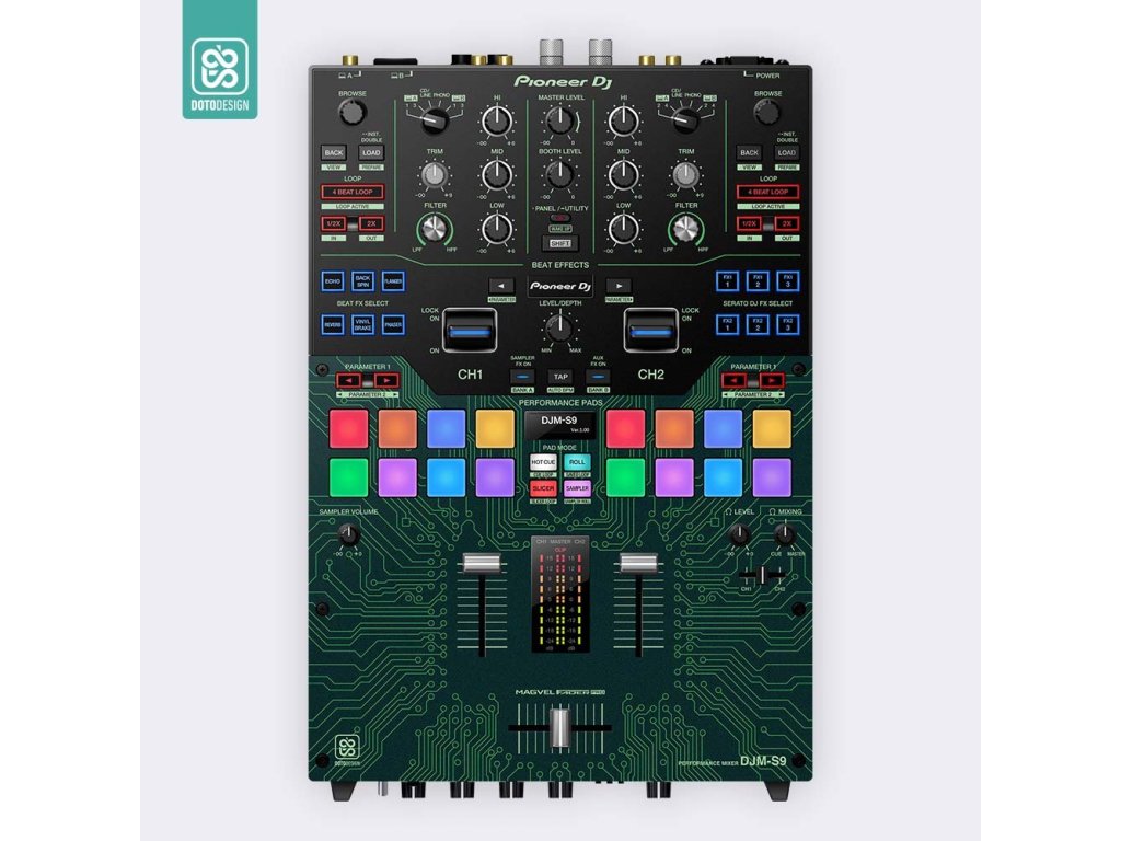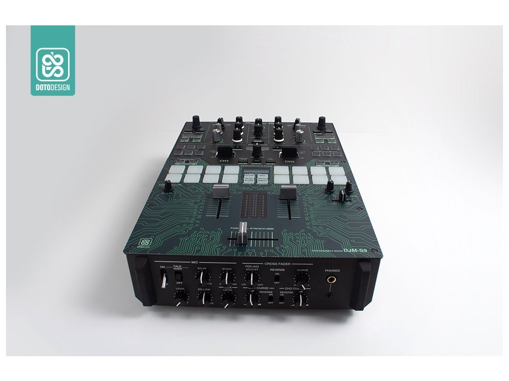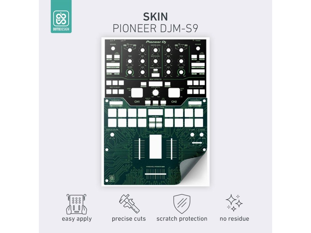 Naklejka na mikser Pioneer DJM-S9 w wersji TECH, inspirowana światem elektroniki w futurystycznym stylu. Kolor light green (jasnozielony).