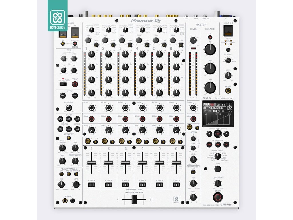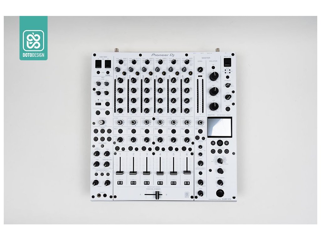 Naklejka na panel mikserski Pioneer DJM-V10 w wersji DAY & NIGHT, kolor biały.
