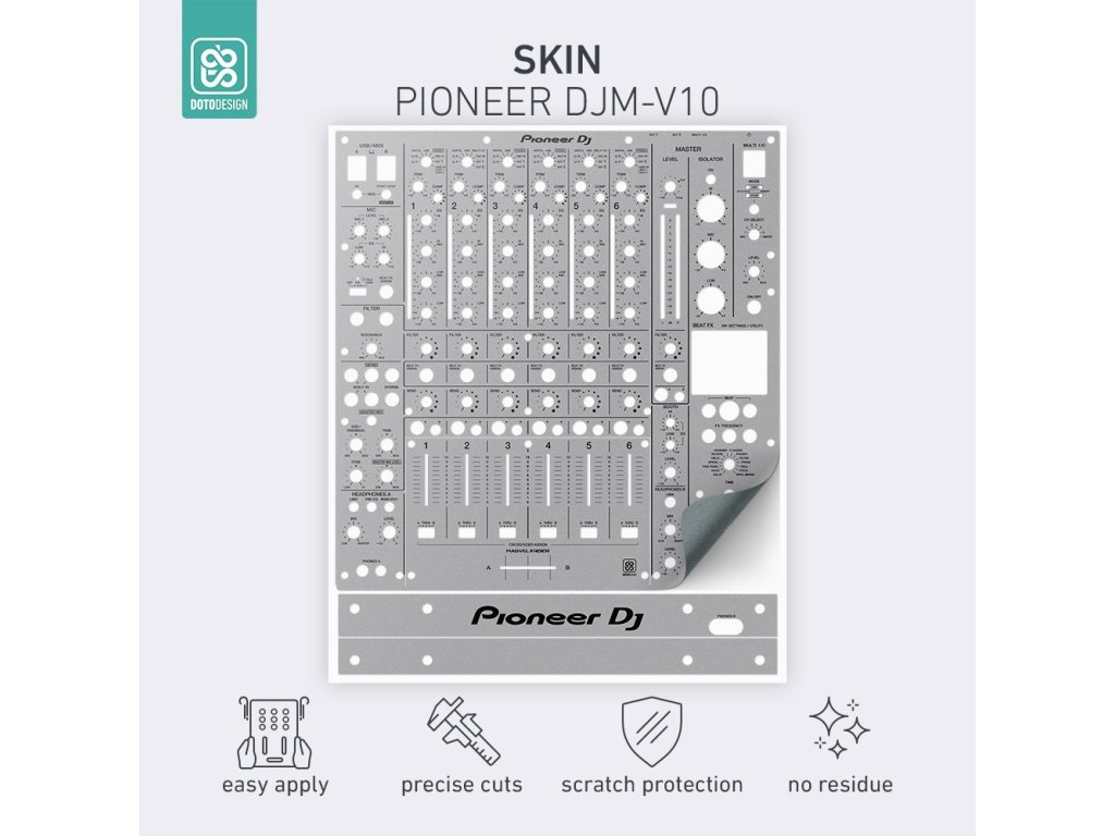 Naklejki Doto Design są idealne do personalizacji wyglądu Twojego sprzętu DJ-skiego (mikserów, gramofonów, odtwarzaczy, kontrolerów). Dostępna jest szeroka gama kolorów i ekskluzywnych wzorów, aby stworzyć niepowtarzalny wygląd. Skórki są precyzyjnie wykonane z materiałów premium, posiadają matową powłokę antyrefleksyjną i chronią Twój sprzęt przed zarysowaniami i zużyciem. Dzięki nowej warstwie adhezyjnej aplikacja jest bardzo prosta, a w przypadku usunięcia skórki na sprzęcie nie pozostaną żadne ślady ani resztki kleju.