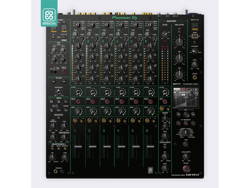 Naklejka na mikser Pioneer DJM-V10-LF w wersji COLORS DVS, kolor zielony.