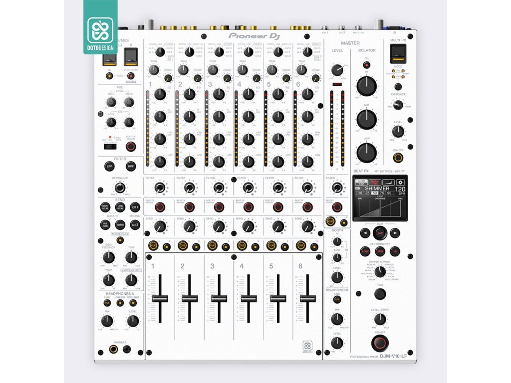 Naklejka na panel mikserski Pioneer DJM-V10-LF w wersji DAY & NIGHT, kolor biały.
