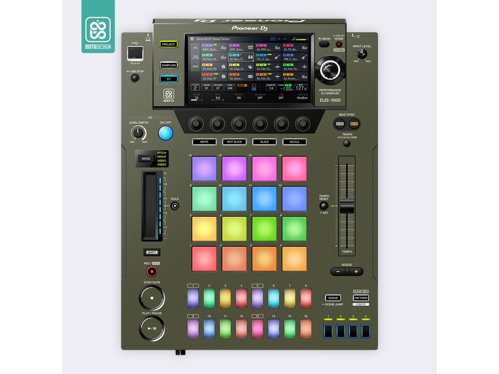 Naklejka skin dla samplera DJ Pioneer DJS-1000 w wersji FULL COLORS, kolor army green (wojskowa zieleń).