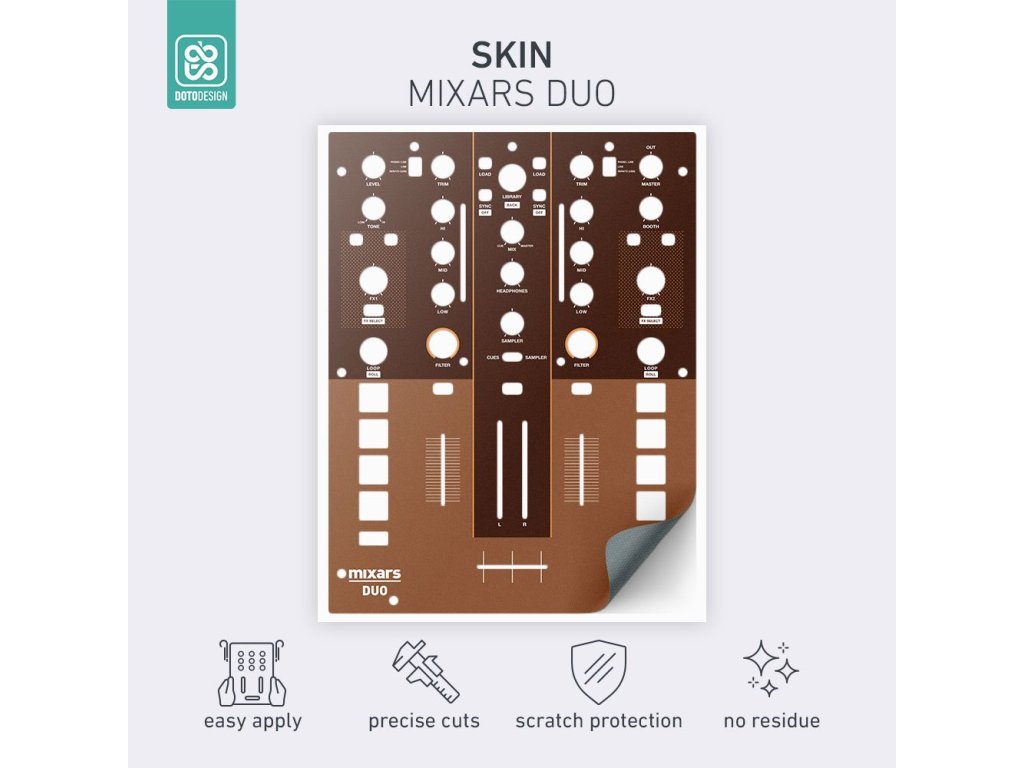 Naklejki Doto Design są idealne do personalizacji wyglądu Twojego sprzętu DJ-skiego (mikserów, gramofonów, odtwarzaczy, kontrolerów). Dostępna jest szeroka gama kolorów i ekskluzywnych wzorów, aby stworzyć niepowtarzalny wygląd. Skórki są precyzyjnie wykonane z materiałów premium, posiadają matową powłokę antyrefleksyjną i chronią Twój sprzęt przed zarysowaniami i zużyciem. Dzięki nowej warstwie adhezyjnej aplikacja jest bardzo prosta, a w przypadku usunięcia skórki na sprzęcie nie pozostaną żadne ślady ani resztki kleju.