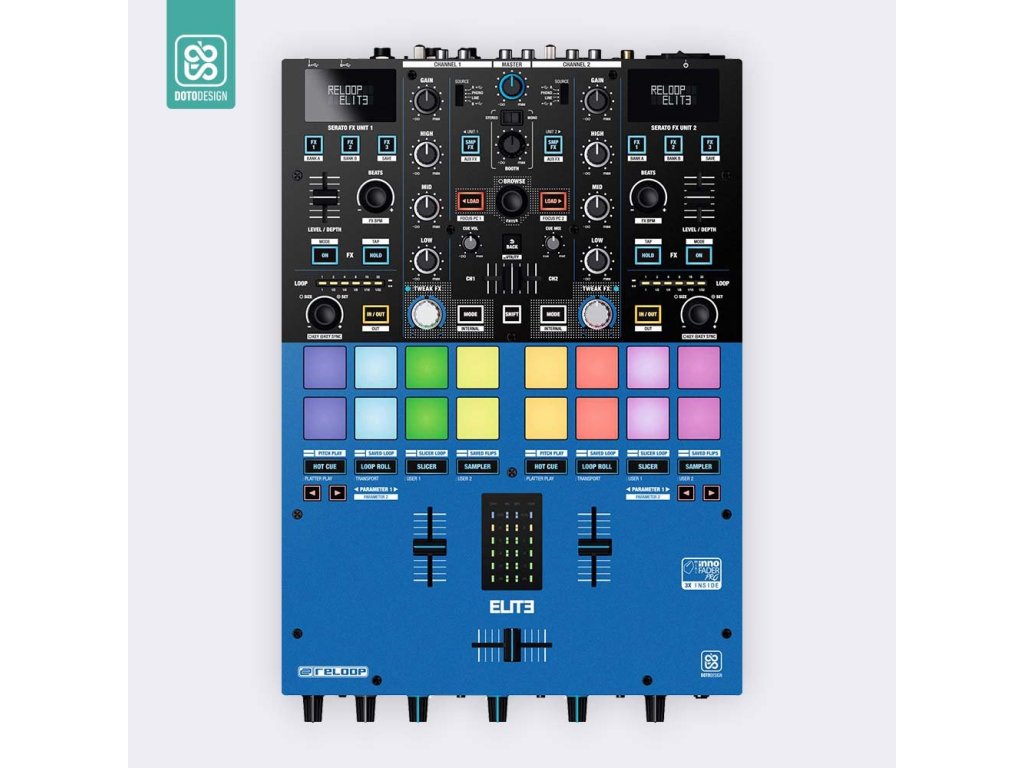 Naklejka na panel mikserski Reloop Elite w wersji COLORS DVS, kolor blue (niebieski).