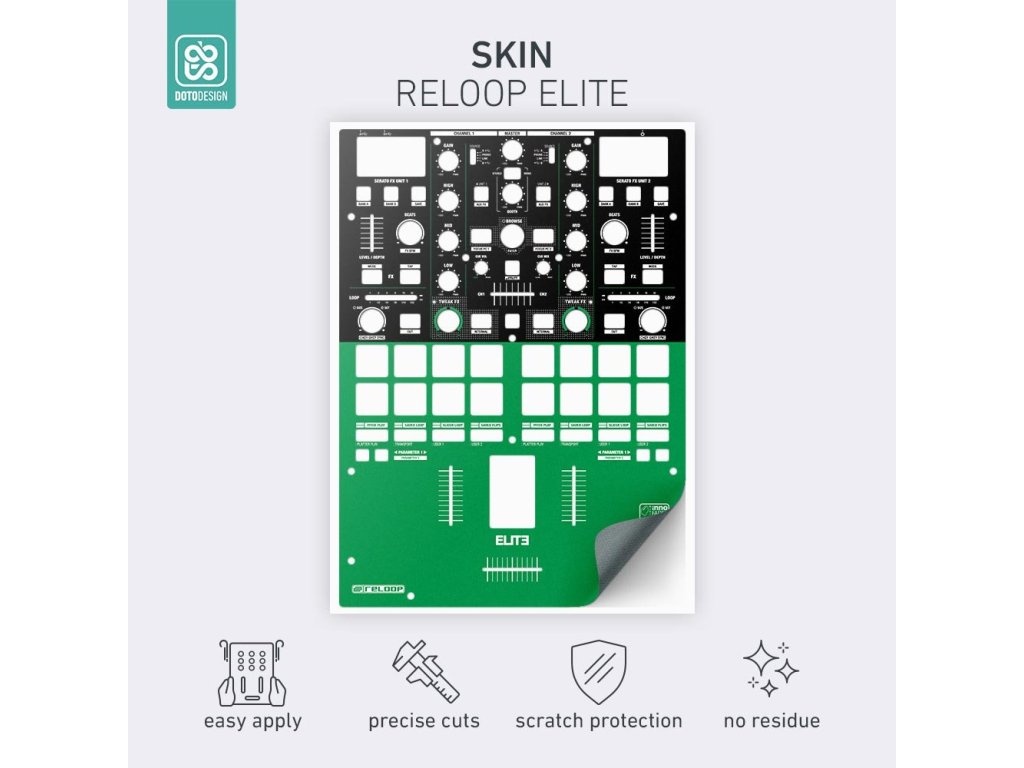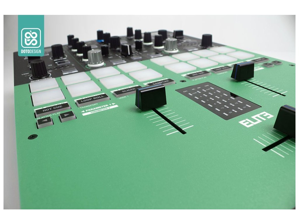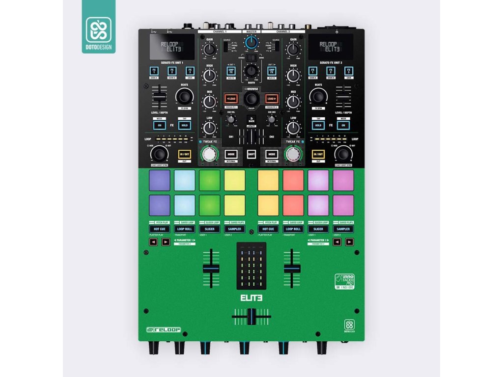 Naklejka na panel mikserski Reloop Elite w wersji COLORS DVS, kolor green (zielony).