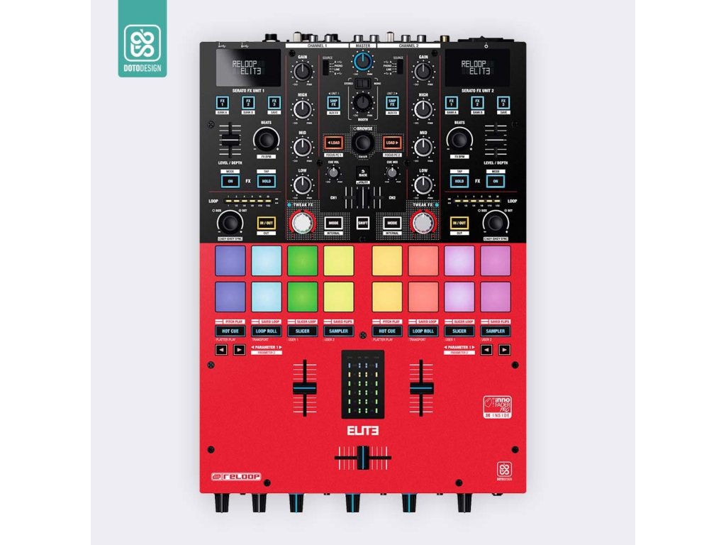 Naklejka na panel mikserski Reloop Elite w wersji COLORS DVS, kolor red (czerwony).