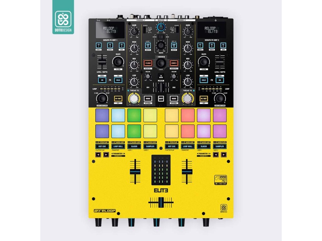 Naklejka na panel mikserski Reloop Elite w wersji COLORS DVS, kolor yellow (żółty).