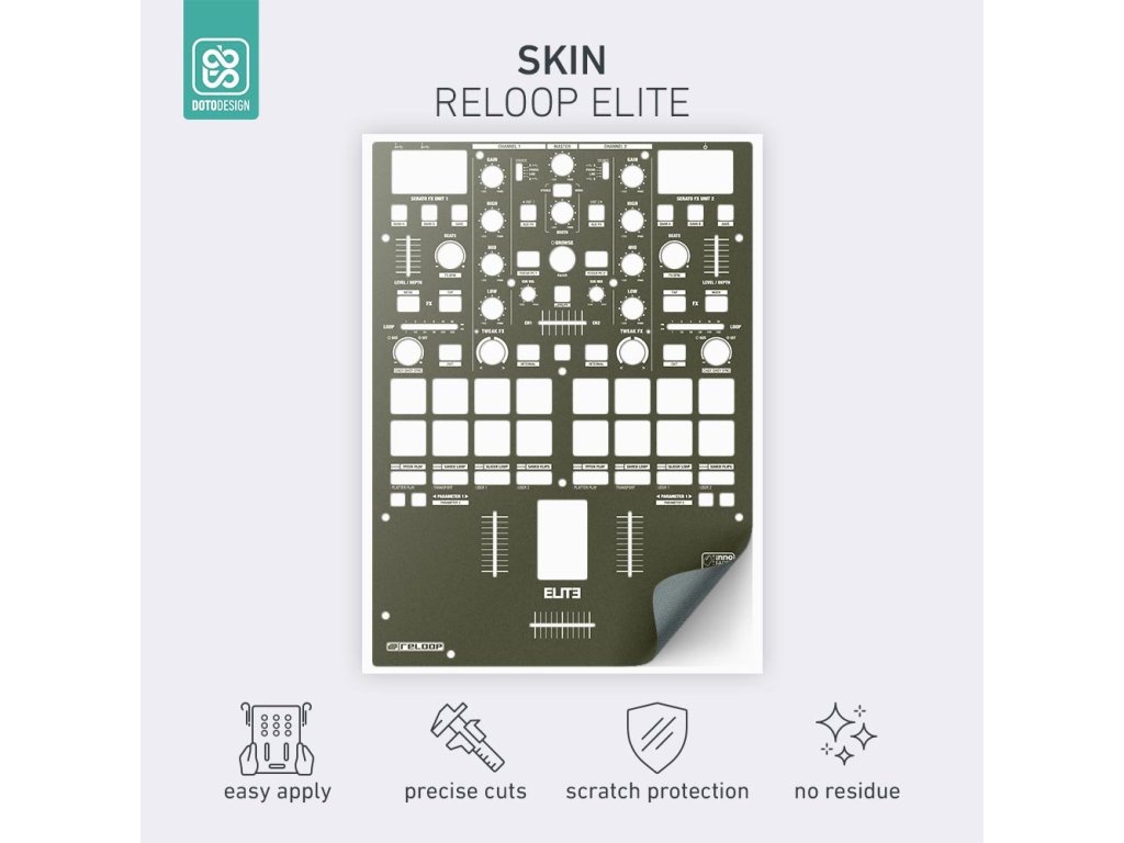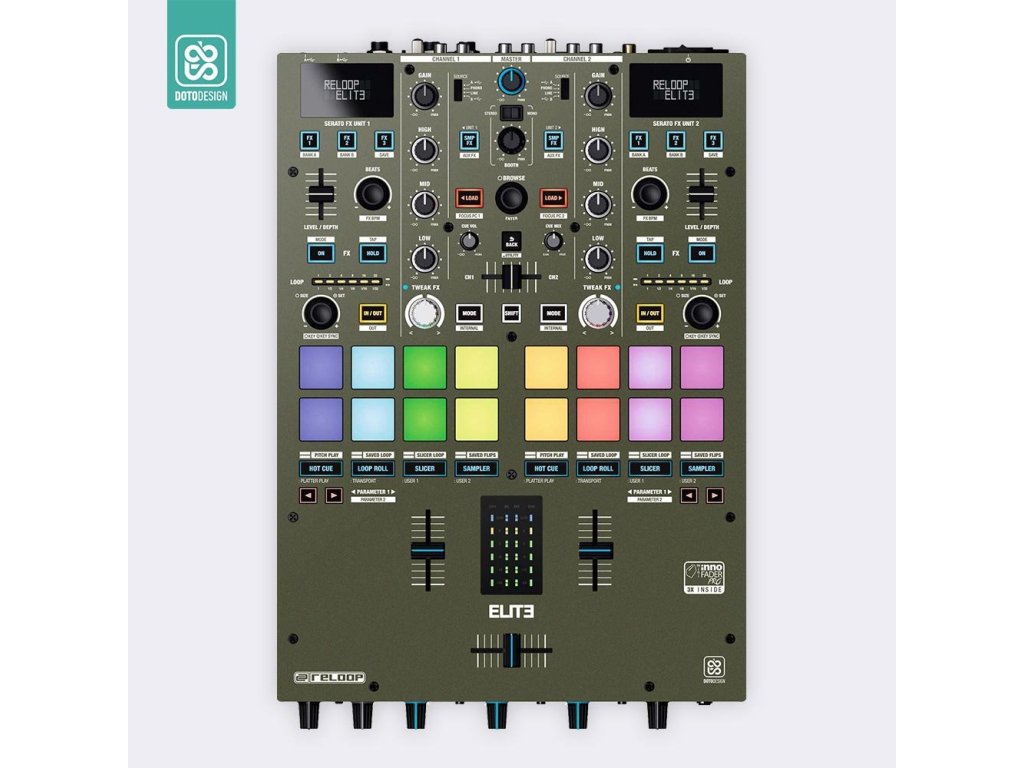 Naklejka na mikser Reloop Elite w wersji FULL COLORS, kolor army green (wojskowa zieleń).