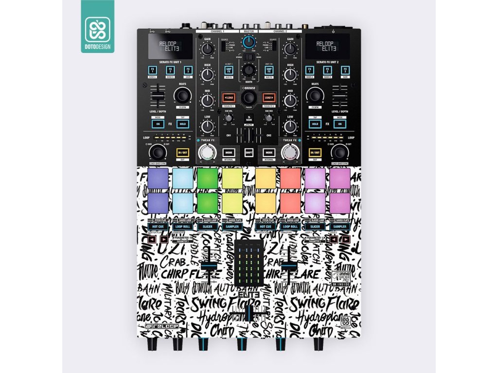 Naklejka na panel mikserski Reloop Elite w stylu SCRATCH STYLE, kolor white (biały).