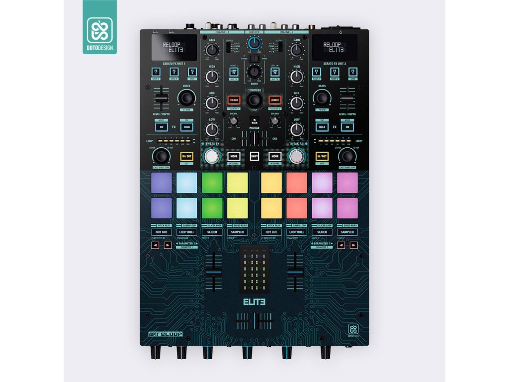 Naklejka na mikser Reloop Elite w wersji TECH, inspirowana światem elektroniki w futurystycznym stylu. Barva light blue (jasnoniebieski).