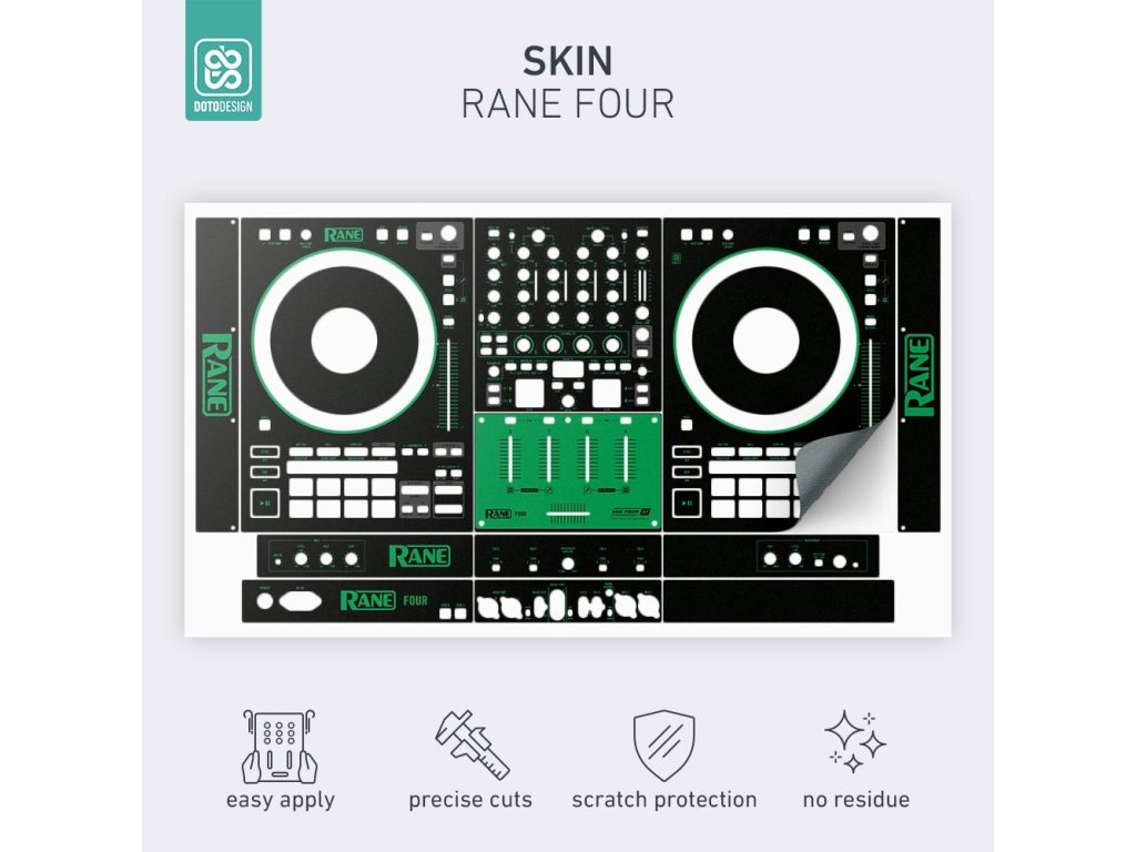 Naklejka na kontroler MIDI Rane FOUR w wersji COLORS, kolor green (zielony).