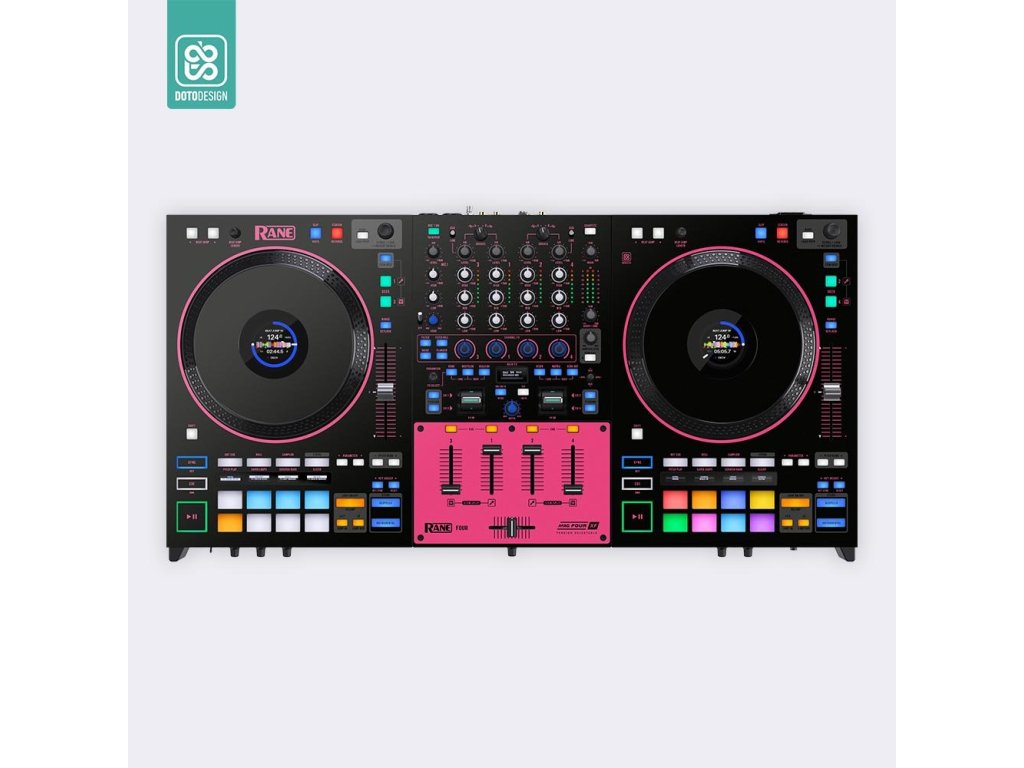 Naklejka na kontroler MIDI Rane FOUR w wersji COLORS, kolor pink (różowy).