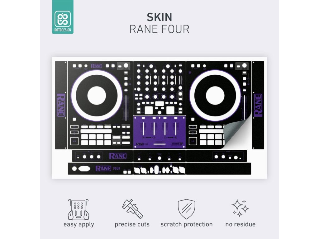 Naklejka na kontroler MIDI Rane FOUR w wersji COLORS, kolor purple (fioletowy).