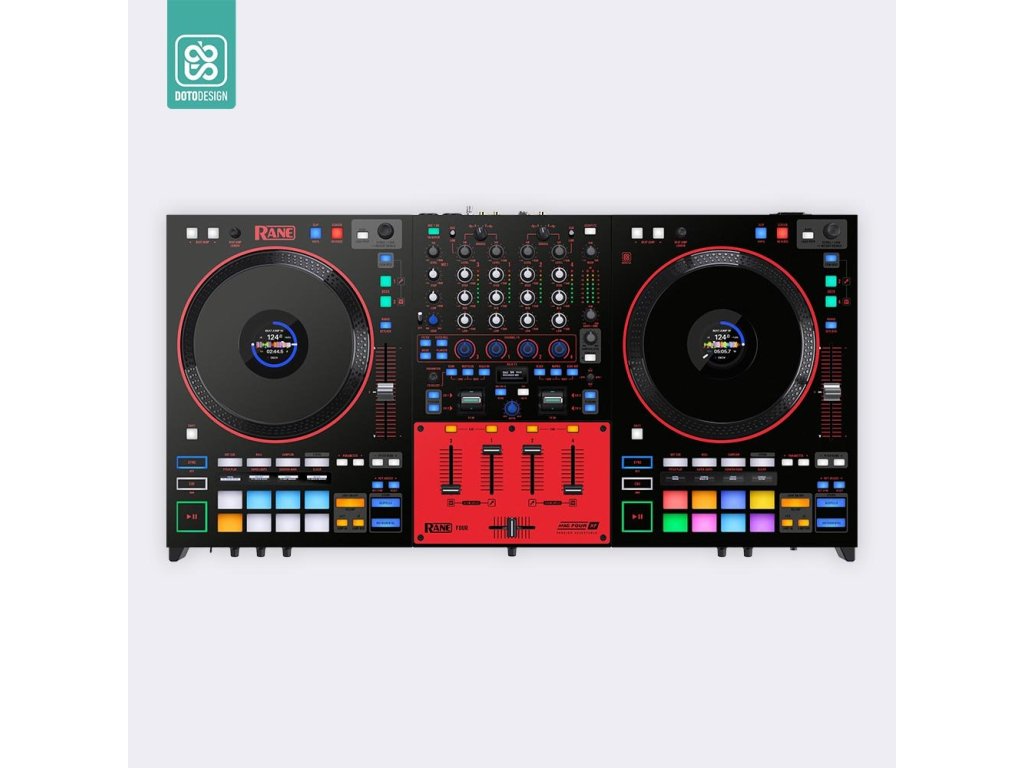 Naklejka na kontroler MIDI Rane FOUR w wersji COLORS, kolor red (czerwony).