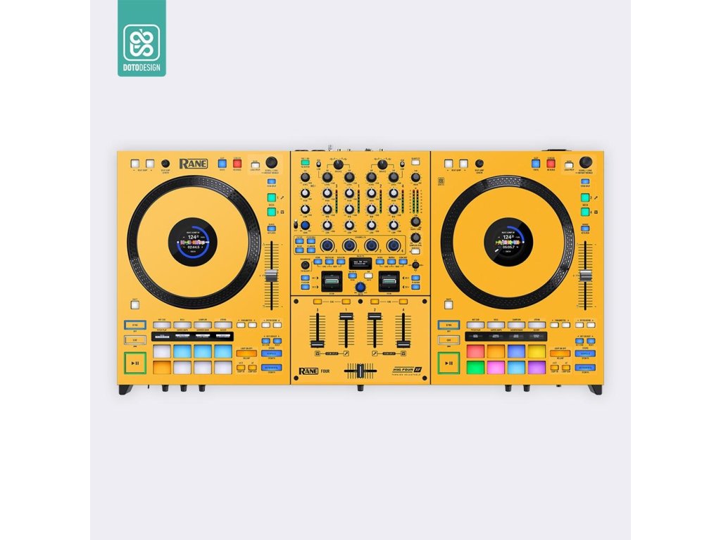Nalepka na kontroler MIDI Rane FOUR w wersji FULL COLORS, kolor dark yellow (ciemnożółty).