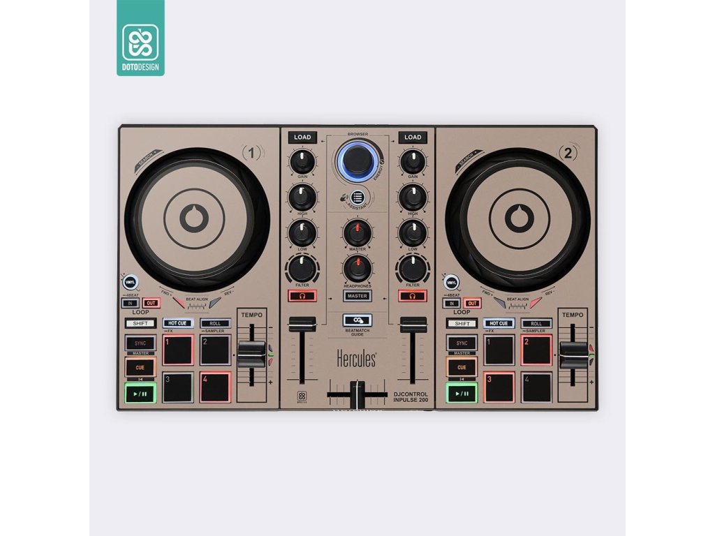 Naklejka na kontroler MIDI Hercules Inpulse 200 w wersji FULL COLORS, kolor stone beige (beżowy).