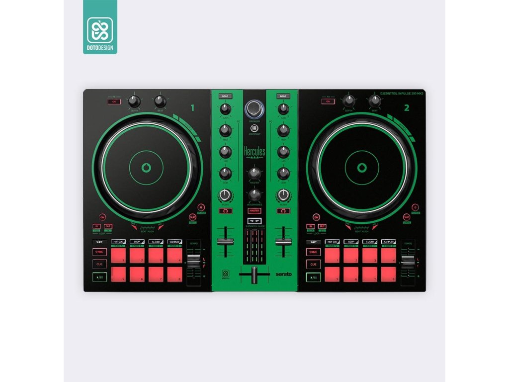 Naklejka skin na kontroler MIDI Hercules Inpulse 300 MK2 w wersji FULL COLORS, kolor COLORS DVS, kolor zielony (green).