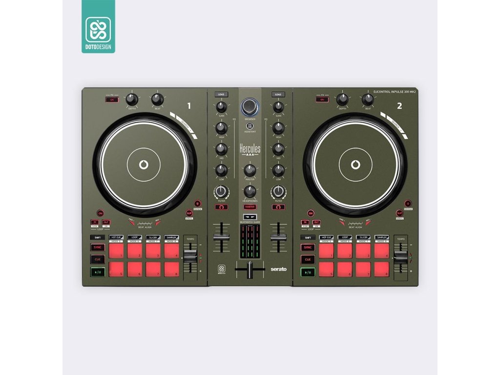 Naklejka skin do kontrolera MIDI Hercules Inpulse 300 MK2 w wersji FULL COLORS, kolor army green (wojskowa zieleń).