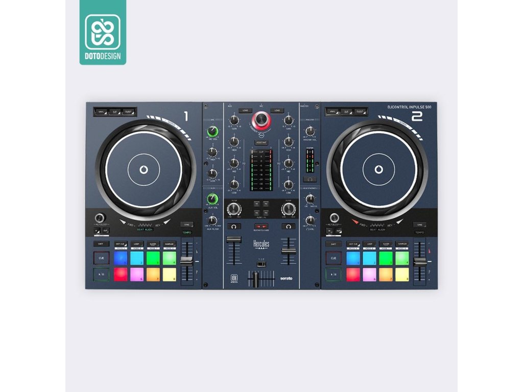 Naklejka na kontroler MIDI Hercules Inpulse 500 w wersji FULL COLORS, kolor midnight blue (północny błękit).