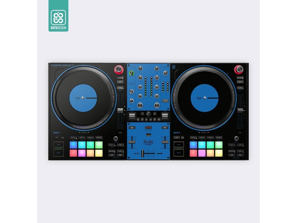Naklejka na kontroler MIDI Hercules Inpulse T7 w wersji COLORS, kolor blue (niebieski).