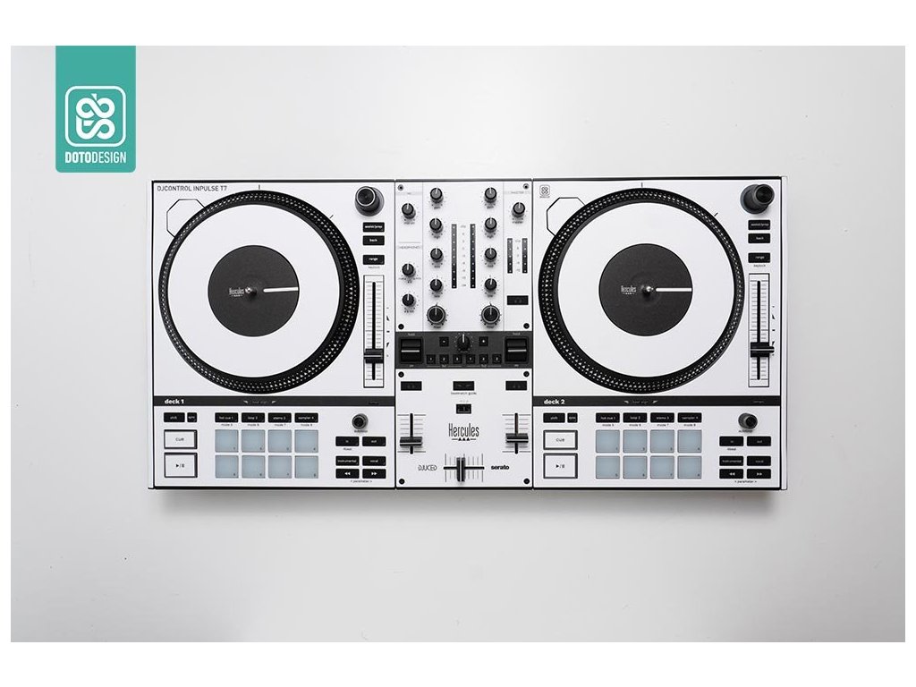 Naklejka na kontroler MIDI Hercules Inpulse T7 w wersji FULL COLORS, kolor biały.