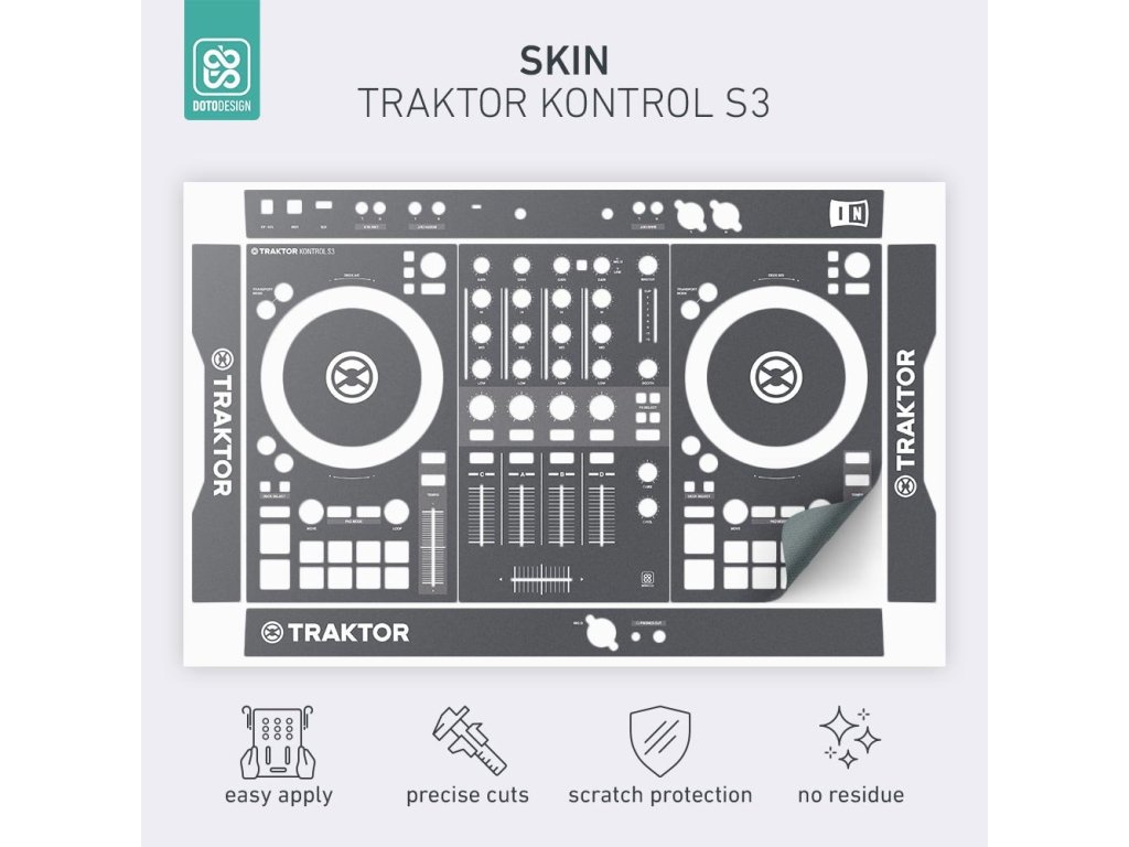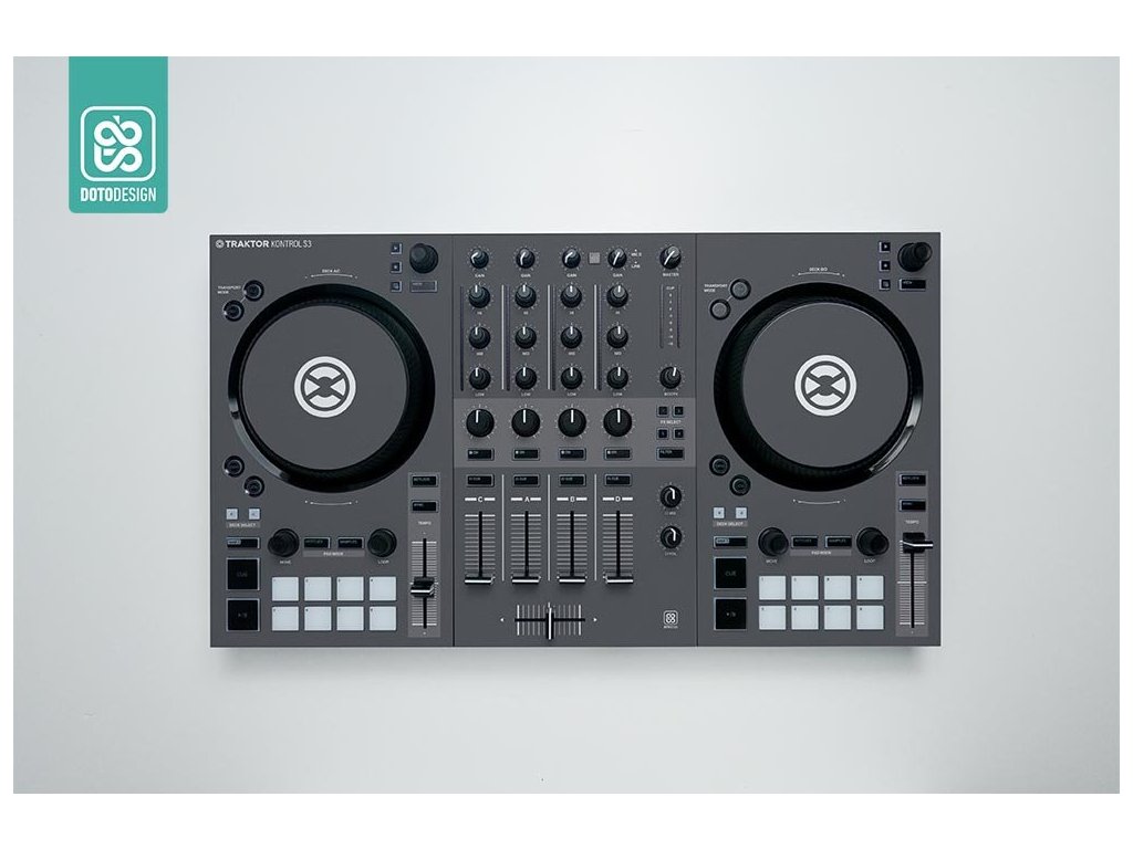 Naklejka na kontroler MIDI Native Instruments Traktor Kontrol S3 w wersji FULL COLORS, kolor graphite grey (grafitowa szarość).