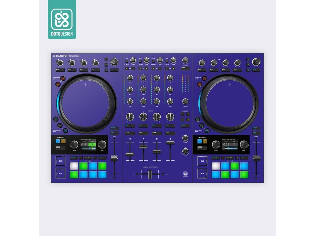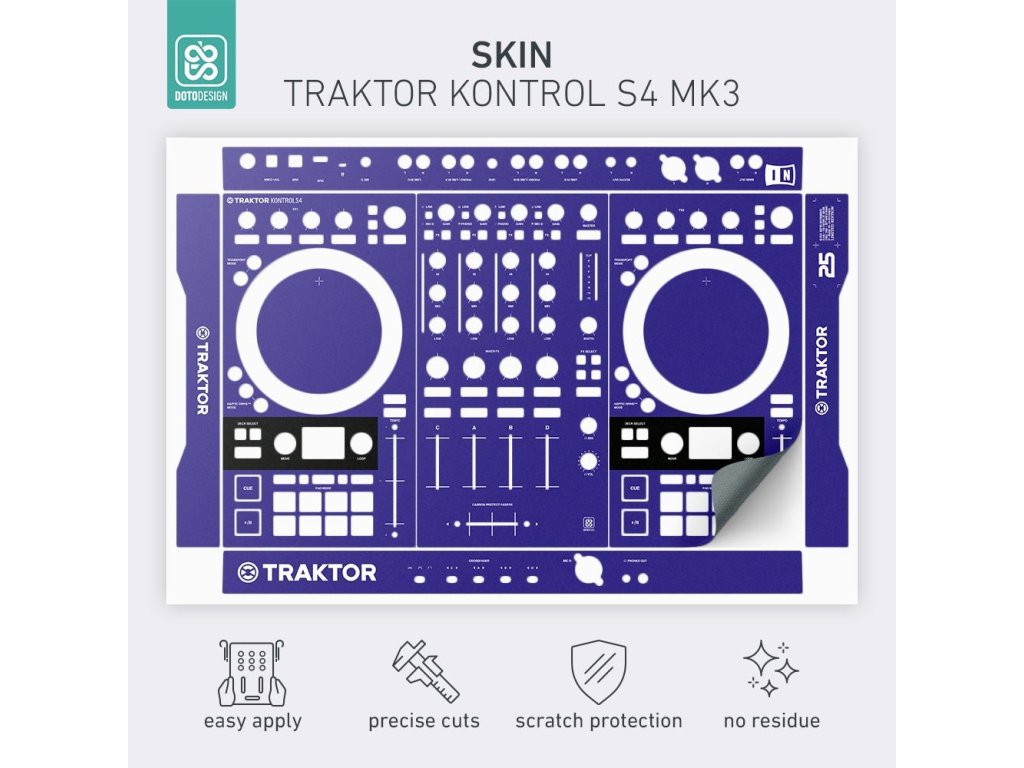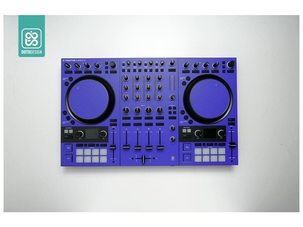 Naklejka na kontroler MIDI Native Instruments Traktor Kontrol S4 MK3 w wersji 25th Anniversary, inspirowana kolorami limitowanej edycji z okazji 25. urodzin Native instruments. Barwa ultraviolet (ultrafioletowa).