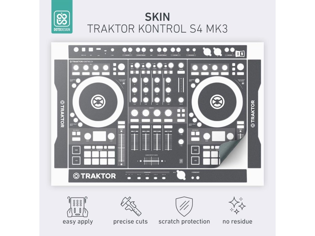 Naklejka na kontroler MIDI Native Instruments Traktor Kontrol S4 MK3 w wersji FULL COLORS, kolor graphite grey (grafitowa szarość).