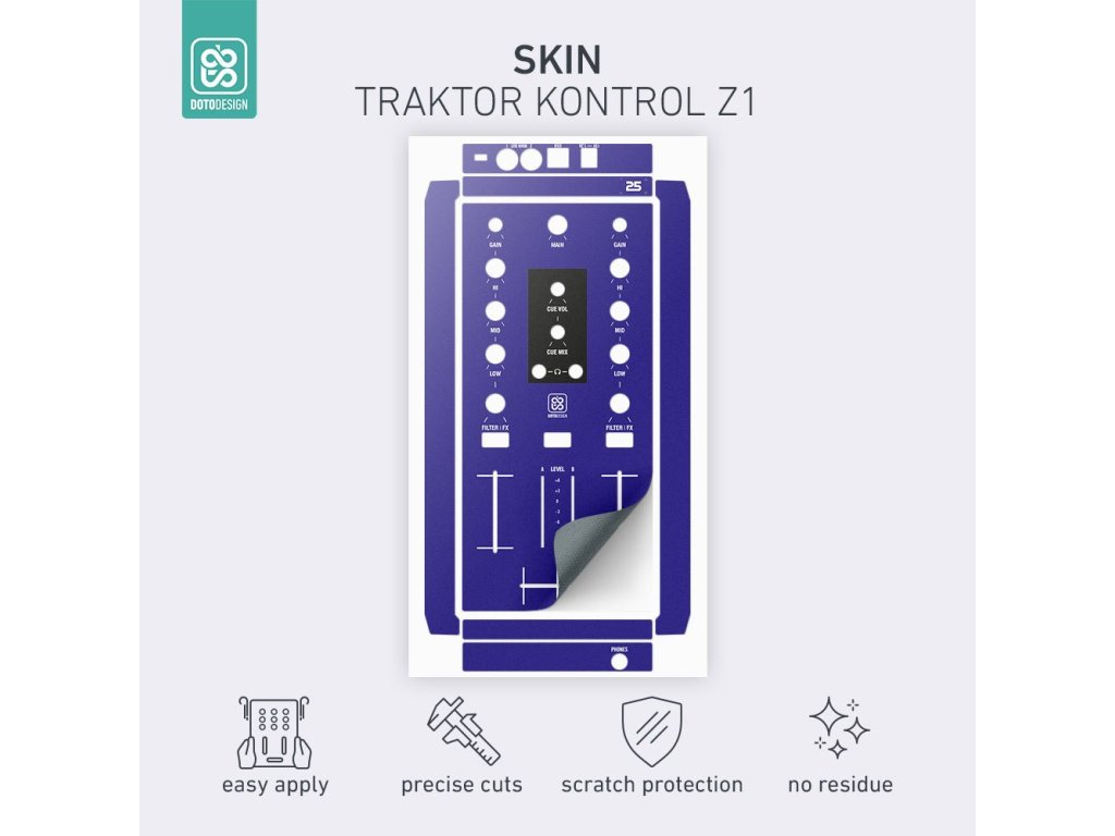 Naklejka na kontroler MIDI Native Instruments Traktor Kontrol Z1 w wersji 25th Anniversary, inspirowana kolorami limitowanej edycji z okazji 25. urodzin Native instruments. Barwa ultraviolet (ultrafioletowa).