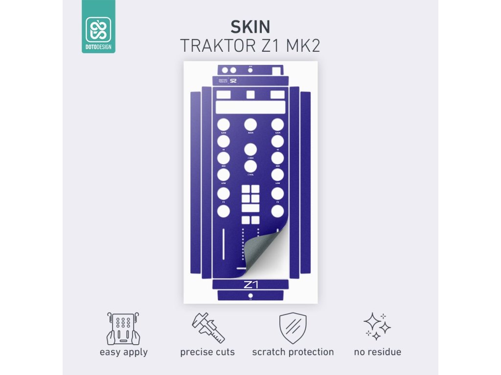 Naklejka na kontroler MIDI Native Instruments Traktor Z1 MK2 w wersji 25th Anniversary, inspirowana kolorami limitowanej edycji na obchody 25. urodzin Native instruments. Barwa ultraviolet (ultrafioletowa).