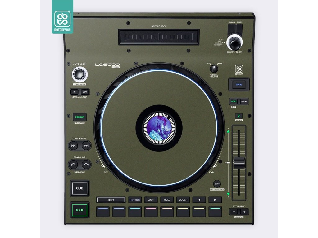 Naklejka na odtwarzacz DJ Denon LC6000 Prime w wersji FULL COLORS, kolor army green (wojskowa zieleń).