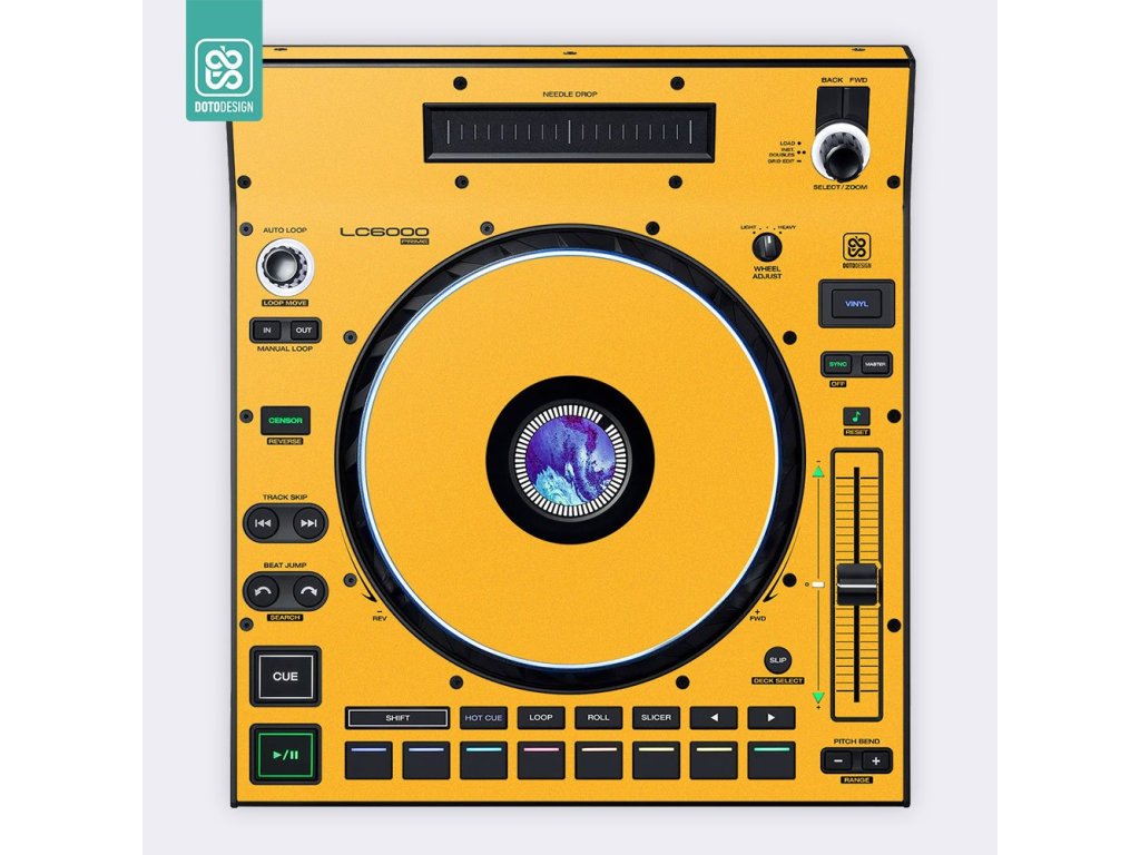 Naklejka na odtwarzacz DJ Denon LC6000 Prime w wersji FULL COLORS, kolor dark yellow (ciemnożółty).