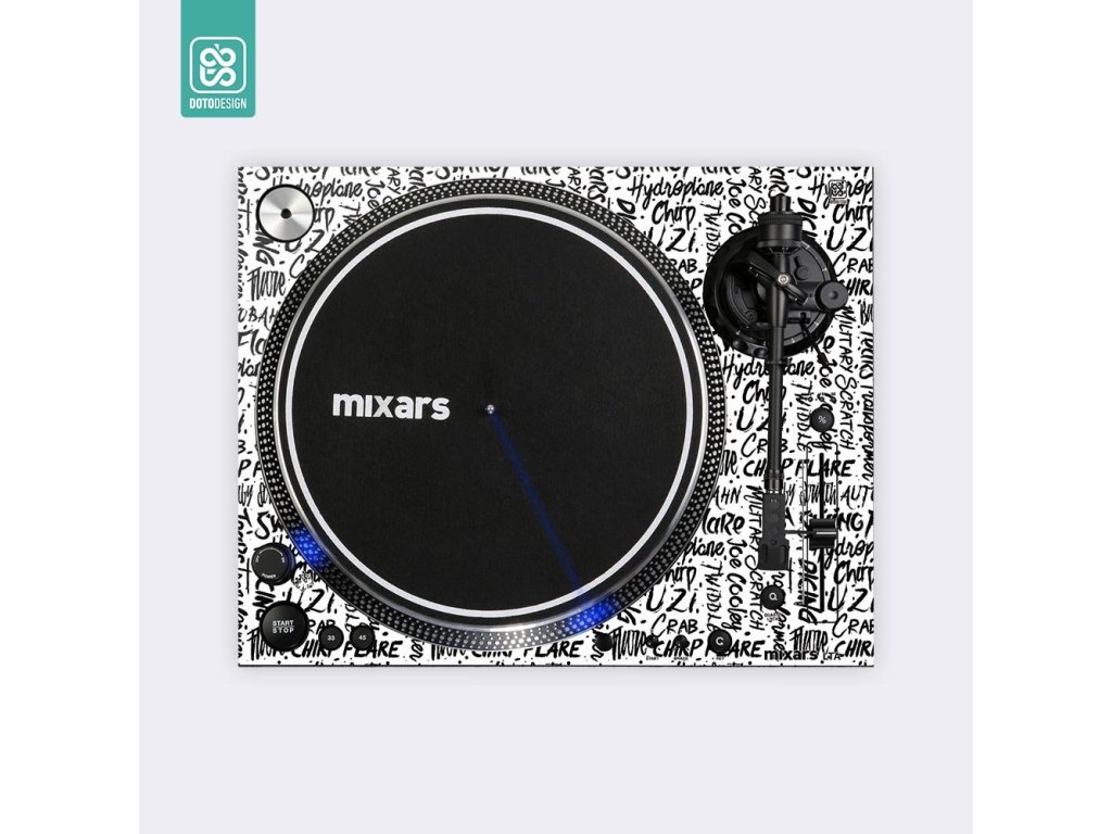 Naklejka skin na gramofon DJ Mixars LTA / STA w stylu SCRATCH STYLE, kolor white (biały).