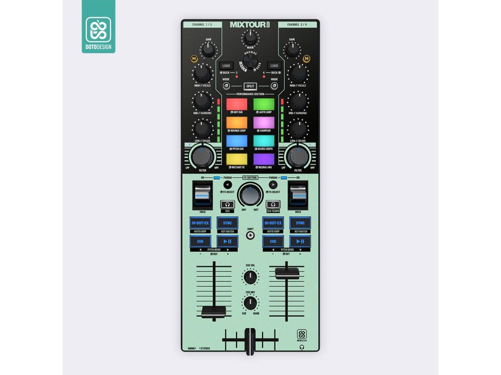 Naklejka na kontroler MIDI Reloop Mixtour Pro w wersji COLORS DVS, kolor aquamarine (akwamarynowy).