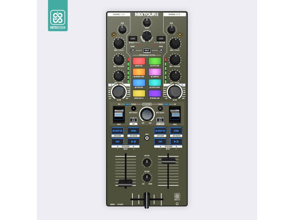 Naklejka na kontroler MIDI Reloop Mixtour Pro w wersji FULL COLORS, kolor army green (wojskowa zieleń).