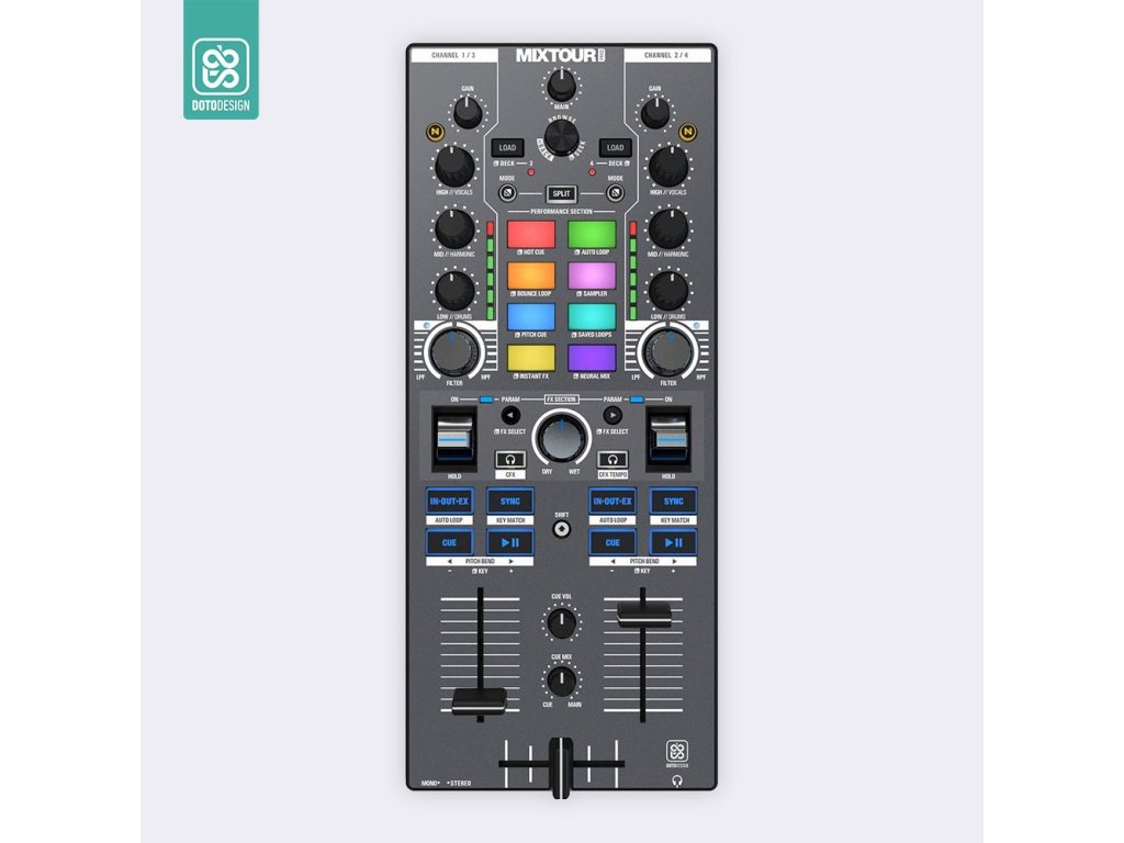 Naklejka na kontroler MIDI Reloop Mixtour Pro w wersji FULL COLORS, kolor graphite grey (grafitowa szarość).