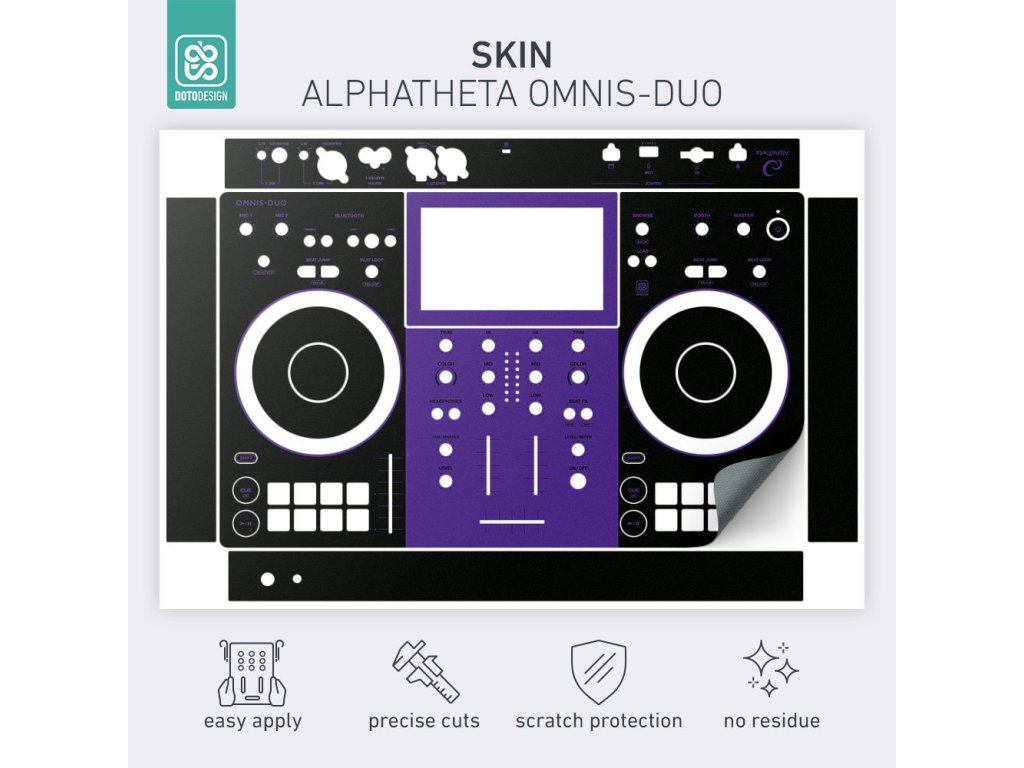 Naklejka na kontroler MIDI AlphaTheta OMNIS-DUO w w wersji COLORS DVS, kolor fioletowy.