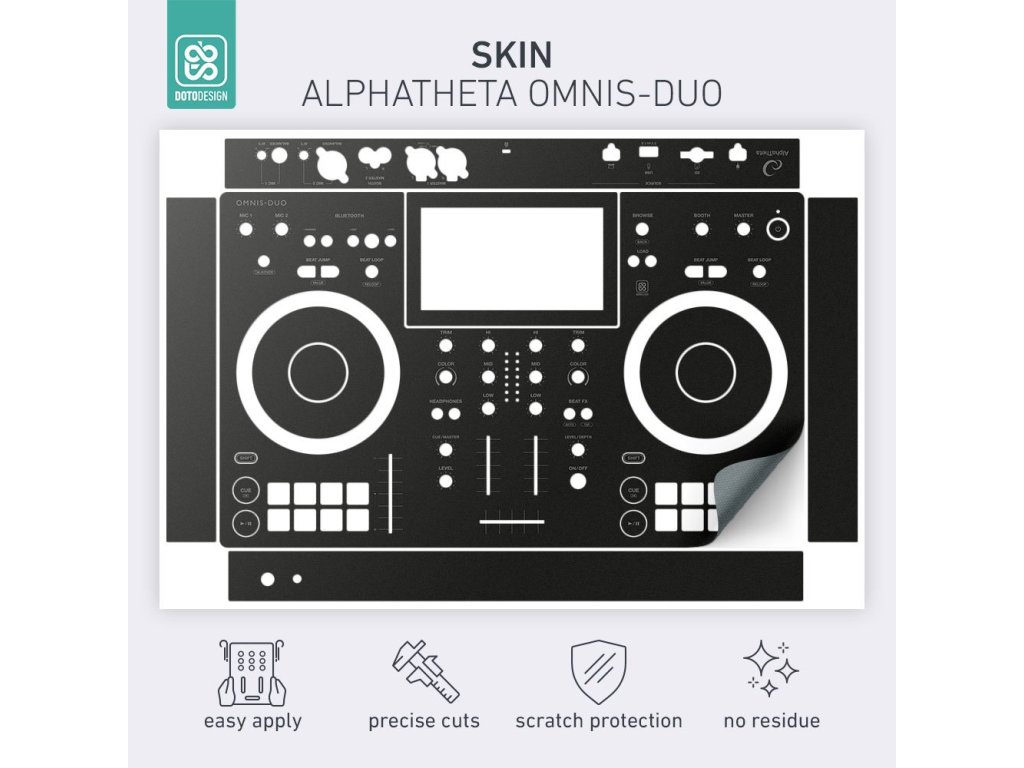 Naklejka na kontroler MIDI AlphaTheta OMNIS-DUO w wersja DAY & NIGHT, kolor czarny.