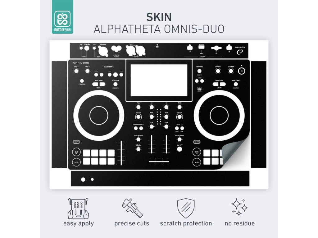 Naklejka na kontroler MIDI AlphaTheta OMNIS-DUO w wersja FULL COLORS, kolor czarny.