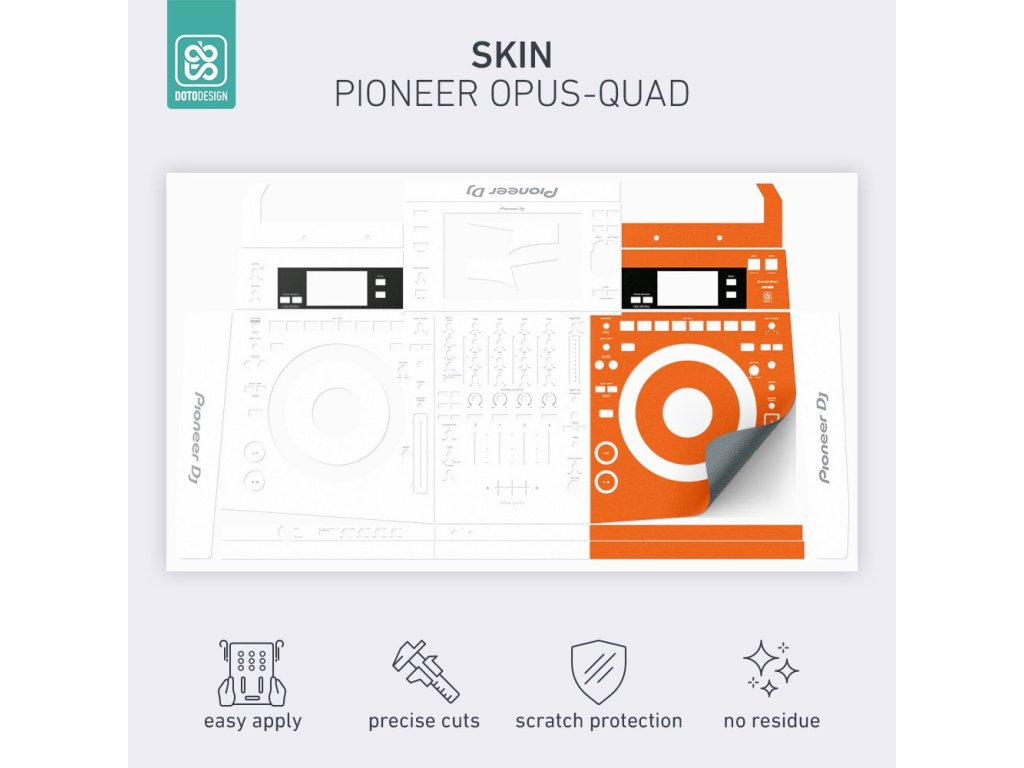 Naklejka skin na kontroler MIDI Pioneer OPUS-QUAD w wersji z asymetrycznym designem, kolor pomarańczowo-biały (orange-white).