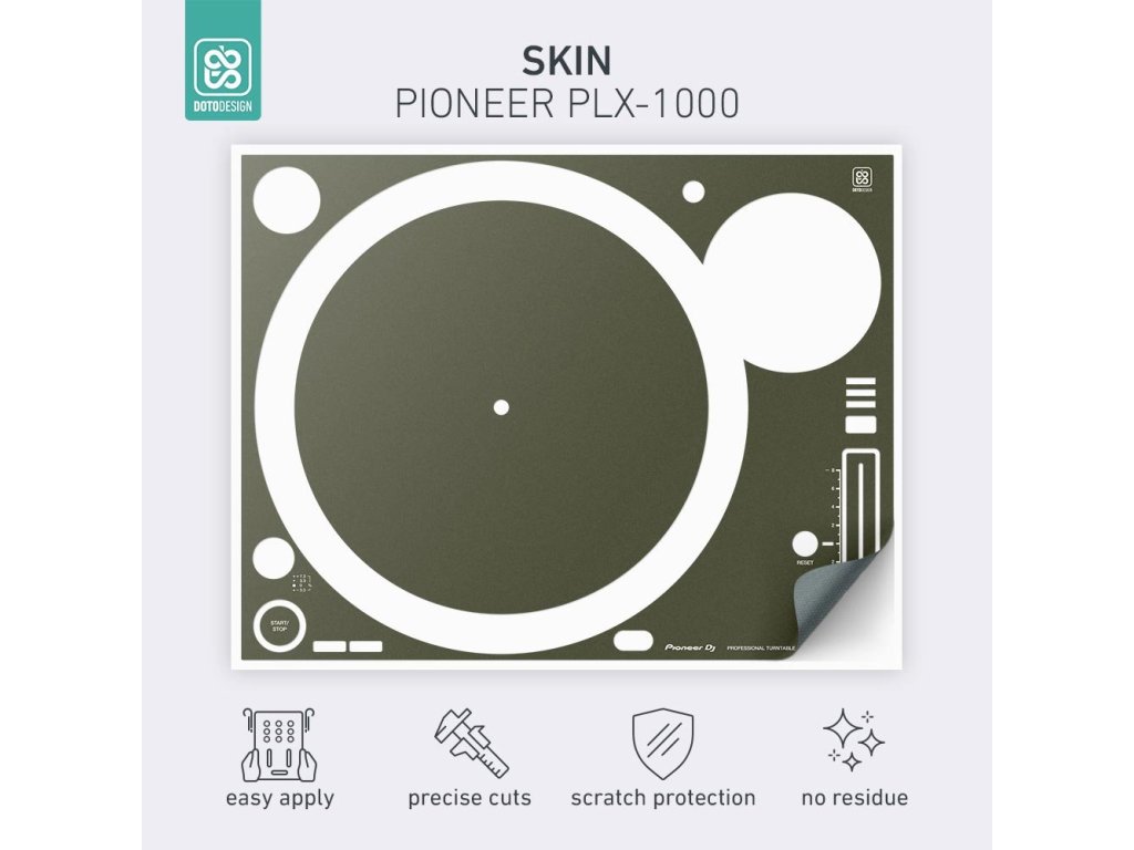 Naklejka na gramofon DJ Pioneer PLX-1000 w wersji FULL COLORS, kolor army green (wojskowa zieleń).